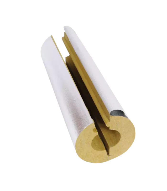 The insulating sleeve has the shape of a hollow longitudinally divided cylinder made of one or more segments, with a lock preventing heat loss through the longitudinal groove. The product can be coated with aluminum foil. The case with adhesive tape is equipped with an overlap of foil with self-adhesive tape on the longitudinal joint for perfect closure of the case. We recommend to pull down the insulating sleeves in the transverse direction (around the perimeter) with aluminum self-adhesive tape. Alternatively, it is possible to pull the casing down with a wire, usually in three places per running meter.
